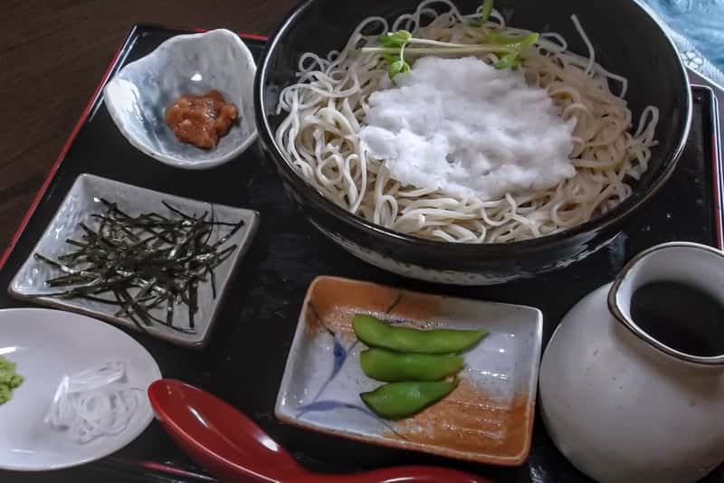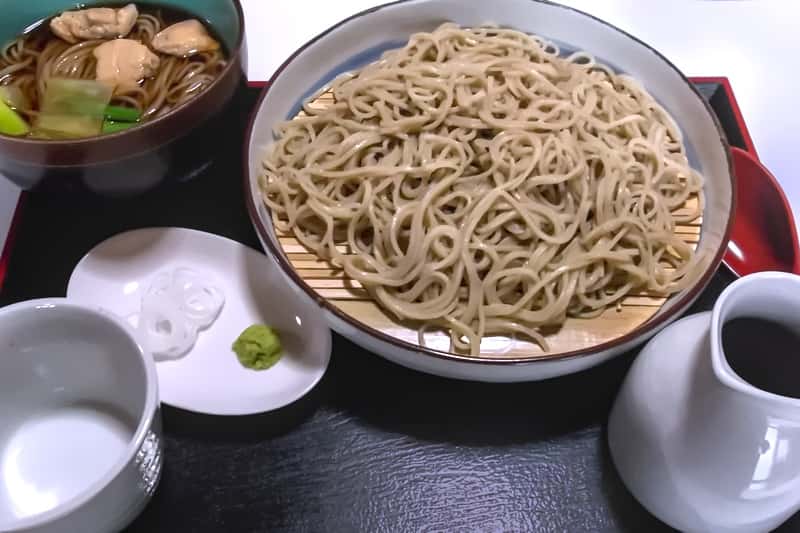 もりそばと小どんぶりに入った温かいそばのセットです。